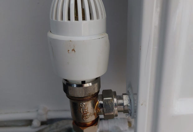 Water seeping through flooring - Burton On Trent, Derby. Thermal imaging camera, acoustics & tracer gas located leak on cold water supply pipe in concrete floor below laminated flooring.